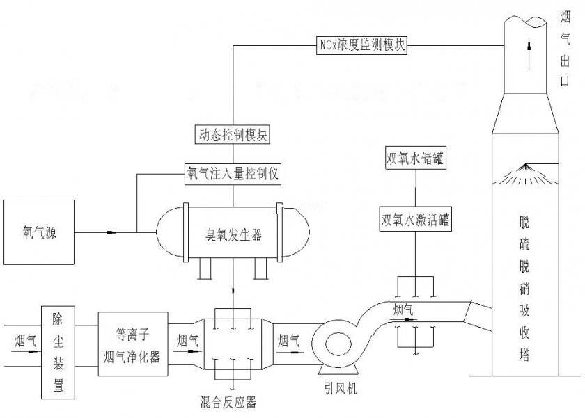 電廠脫硝工藝一般采用SCR工藝,在一定溫度和催化作用下,利用加氨還原的方法把氮氧化物還原為氮氣。臭氧可以利用其強氧化性把不可溶的低價態的氮氧化物氧化成可溶的高價態的氮氧化物,再利用堿化吸收洗滌工藝清除掉。臭氧煙氣脫硝不需要增高煙氣的溫度;不使用氨等還原劑;在NOx含量、煙氣量不穩定條件下,控製靈活;維持90%以上的脫除率;同時處理重金屬;可配合同時實現脫硫。